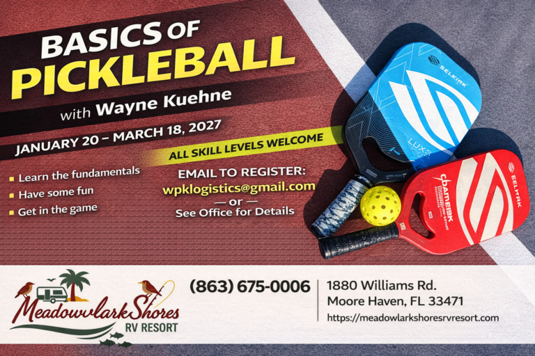 Meadowlark Shores RV Resort is located near Labelle, Florida and near Moore Haven, Florida. We are located right on the Caloosahatchee River near lake Okeechobee